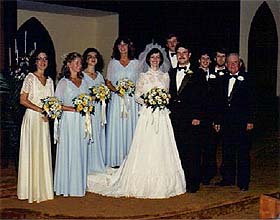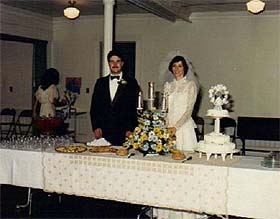 Remember the year? 1982. Blood tests were scheduled, and except for a minor incident involving fainting, it was determined we weren�t long lost cousins, or fated with some dire disease and the test results were handed over so that a license could be gotten. We went to the courthouse, produced the test results and our birth certificates, signed a few papers, and were told that the license would be sent directly to the Officiant. Now was the time to have some fun! Those magazines! The ceremony! The reception! Inviting friends and family members to be our attendants! The excitement and the angst! Oh, my! The budget! (See the first paragraph.) I had been living on my own for a couple of years, and was proud that I didn�t rely on my parents for anything. While I have no doubt my parents would have given me what they had to accomplish the wedding of some editor�s dream, I was a grown woman. It never entered my mind to ask them for money. And, so, here follows the total cost of my storybook wedding in 1982. Rehearsal - $0 My fianc�e�s family hosted snacks in the church basement, and picked wildflowers from the roadside as decoration. Wedding dress - $60 This was the cost of materials and patterns. Mother made my dress AND veil for me, and I still have them. (Didn�t say I could still wear the dress!)