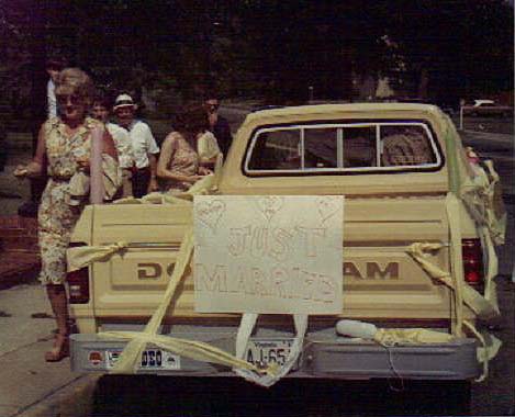 Cake - $40 Local bakery, yellow cake and white icing. I had to return the bride and groom topper. Invitations - $30 for 100 with envelopes. Local print shop. No RSVP, no raised letters, no little tissue paper inserts. An announcement and blanket invitation was also printed in the church bulletin for several Sundays. Fresh flowers - $110 My best friend�s family-owned florist. Bouquets, boutonnieres, corsages, altar d�cor, table arrangements were all included. Reception - $20 Church basement. The money bought ingredients for the punch (no alcohol in this Baptist church basement!) Various friends and family members provided munchies as a gift to us. Photography - $60 One 12 x something bridal portrait, unframed, and an album of pre-, post- and reception shots in 4x6 size. Attendants gifts - $50. That�s for four bridesmaids and four groomsmen. Groom�s tux rental - $28 Honeymoon - $200 for an efficiency apartment in a little hotel at the beach for three nights. Done the math yet? Total cost was just at $600. I know. You have questions. There were no hotel bills for out-of-town guests. They stayed with family members or paid for their own. My bridesmaids paid for their own dresses (JC Penney catalogue, $39 each). The groomsmen rented their own tuxedos. We gave the preacher an envelope with $20 inside, and he gave it back. He said we needed it more than he did. There was no limo ride because the entire ceremony and reception was in one place. We left the church in a pickup truck with no air conditioning on our way to the beach (on the 17th day of July�I hear a record temperature was set that day). I don�t remember who caught the bouquet or garter,