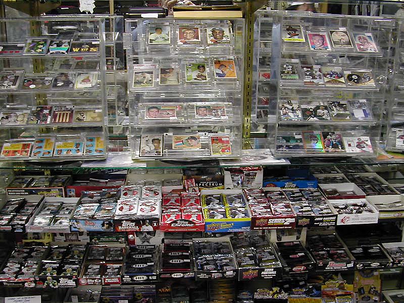 Prior to the 1990's, collectors looked for cards of a particular player. The valuable cards today are cards with a limited run or something special about them. Many cards now come with something like an actual piece of a "game used" jersey, a paint chip from a game helmet, a piece of a game ball or bat, or a hand written autograph. Limited edition cards may be numbered, like artwork, and will have a series number on them such as card number one of 27. Some of these cards may even be limited to one of one. The problem with older cards they told us was usually due to the condition of the card. A card looses value very quickly with any damage. An otherwise valuable card might be worth only 1/3 as much with minor roughness on the edges. Mack told us about one case where a woman came in with several photo albums full of cards from the 50's and 60's. It seemed almost painful for him to tell the story. The lady had several very valuable cards in the albums,