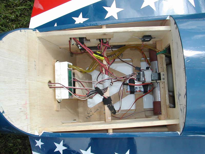 Hand built RC Aircraft showing electronics |