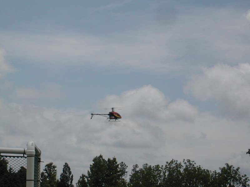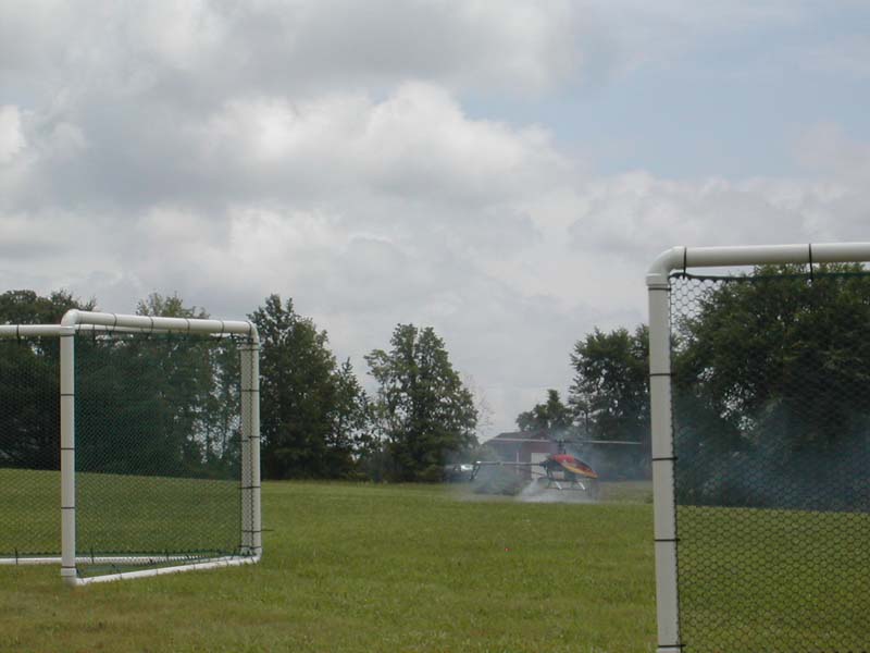 RC Helicopter landing. The pilots stand behind these safety nets. |