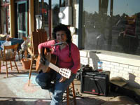 - Nelly Zamora Jones of South Boston drawing caricatures and playing the guitar.