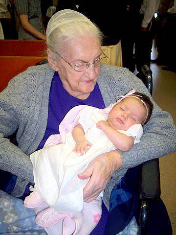 See You In The MorningBy Gertrude M. Slabach My mother is dying, and I don�t want to say good-bye. Even though I don�t want her to go, I know she can�t stay. While her reoccurrence of breast cancer was not a shock to us, it was still a grief with which we need to cope. It is not fair, and I told God so. I thought, after all my mother had endured in her lifetime, she ought to be able to die without a diagnosis of cancer, and certainly without pain. They tell us there is going to be pain. Even though I can�t change the diagnosis, I can govern my response. Thus my prayer has been that she will not have unbearable pain and that we can all be with her when her ship sets sail. I am learning to relax in the arms of my Captain, who charts her course as well as mine. Rather than saying goodbye, I�ll be saying, �Good night. �See you in the morning!� As a child, my mother experienced happy days growing up the youngest in a family of nine children. Her father was a farmer and a bishop in a Mennonite church in western Maryland.